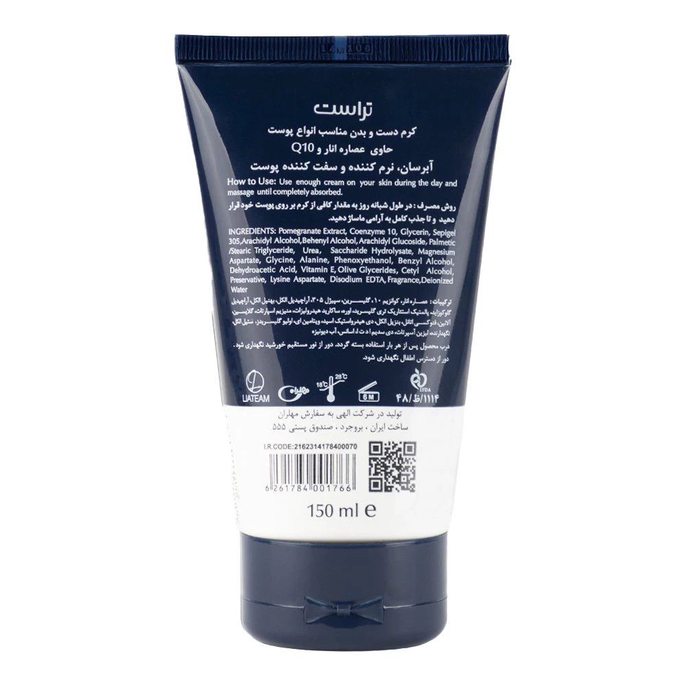 کرم دست و بدن انار و Q10 مناسب انواع پوست آبرسان ،نرم کننده و سفت کننده پوست
