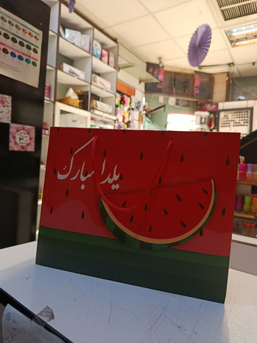 بگ یلدا مبارک هندوانه بهمراه پوشال رنگی